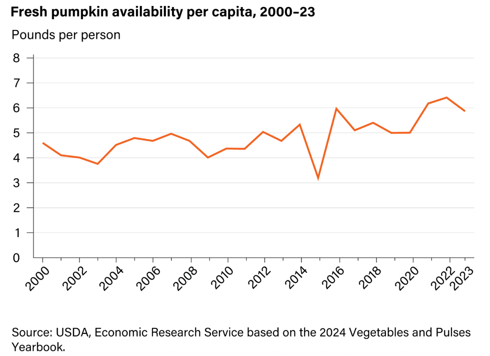 Happy Halloween, to all who celebrate. In the holiday spirit, would you like to read something a little spooky? Climate change is already taking a toll on the nation’s pumpkin crop. Extreme heat and rain are reducing how many gourds are available for jack-o-lanterns, as the National Oceanic and Atmospheric Administration warned last year. The downward trend continues. In the latest crop update from the U.S. Department of Agriculture, the per capita availability of pumpkins fell by 11%, more than five times the reduction in squash and twice the fall in sweet potatoes.