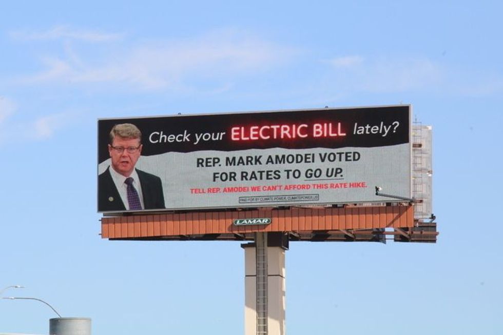“Check your electric bill lately? Rep. Mark Amodei just voted for it to go up,” declared a billboard in Reno, Nevada, sponsored by the advocacy group Climate Power.